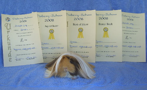 Für mich endete es wie folgt: ![]() Blue Princess gewann für mich: 3. Platz Untergruppe Peru (von ca. 150 Meeries!!!) 2. Beste Sau der Schau!!!!!!! 2. Platz Oberklasse Peruaner 1. Platz Untergruppe Peruaner slate blue-gold-weiß